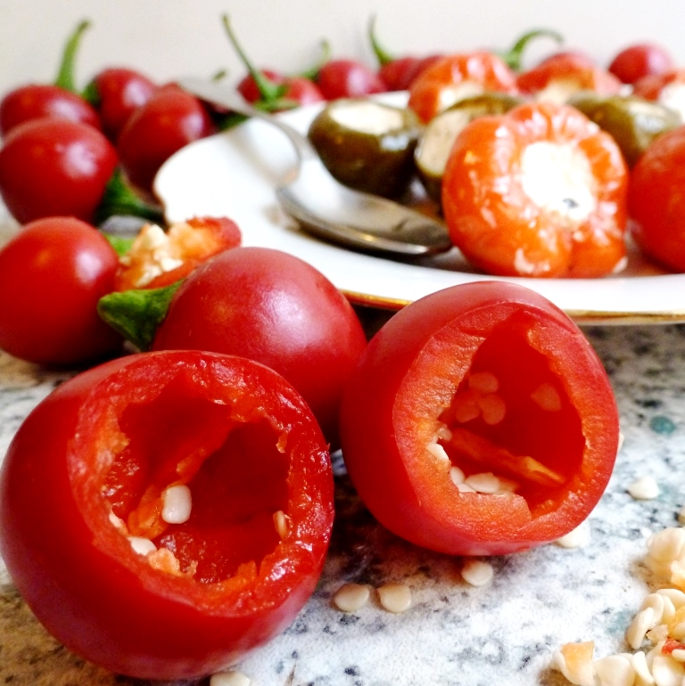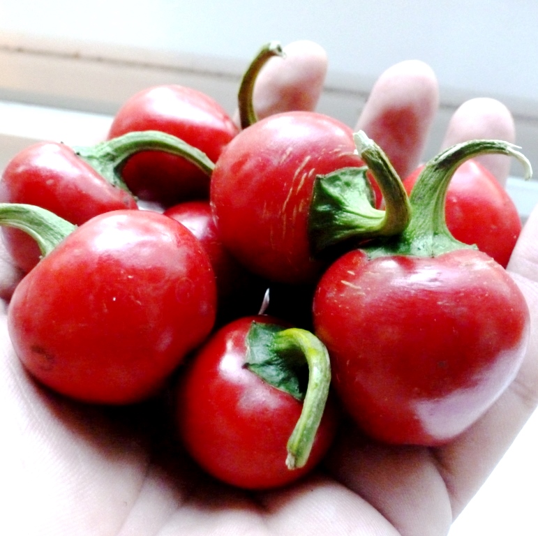 Эти перчики одни из моих самых любимых. Они знамениты тем, что их очень удобно фаршировать. В основном их фаршируют мягкими сырами (фетой, брынзой, мацереллой…) и заливают оливковым маслом. Фаршируют их как свежими так и маринованными. Кустики невысокие. Сплошь покрыты плодами 2 — 3 см. в диаметре. Сорт хорошо подходит для выращивания как в открытом грунте, так и на подоконнике в доме. Этот сорт один из самых редких, его буквально нигде не найдёшь!