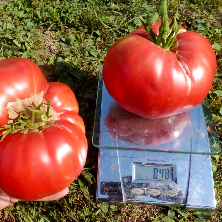 Мне довелось увидеть несколько плодов весом больше килограмма всего на пяти кустах и порядка двух десятков плодов лишь немного им уступающих.