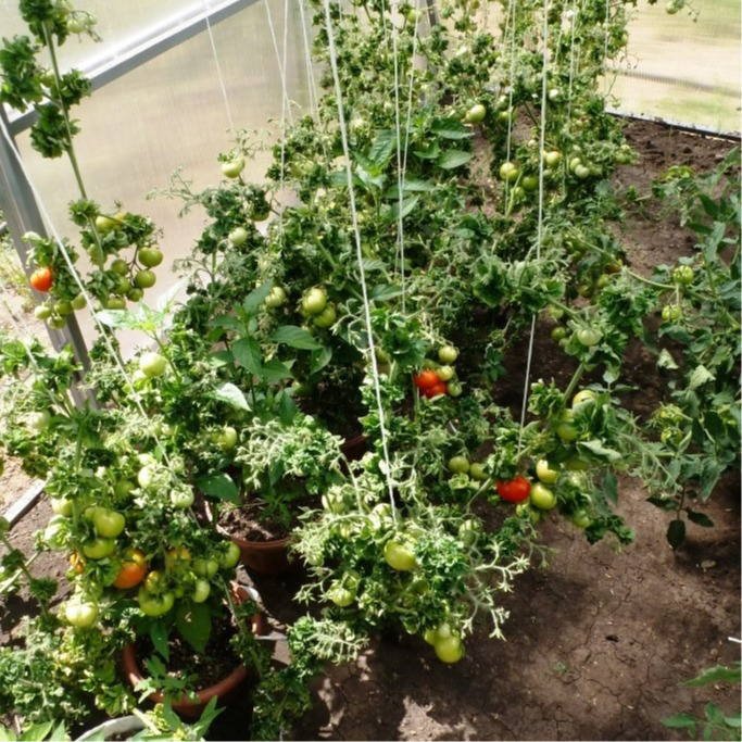 Из-за практического отсутствия листьев можно сажать через каждые 20 см, не пасынковать и при этом получать высокие урожаи идеальных по товарному виду помидор.