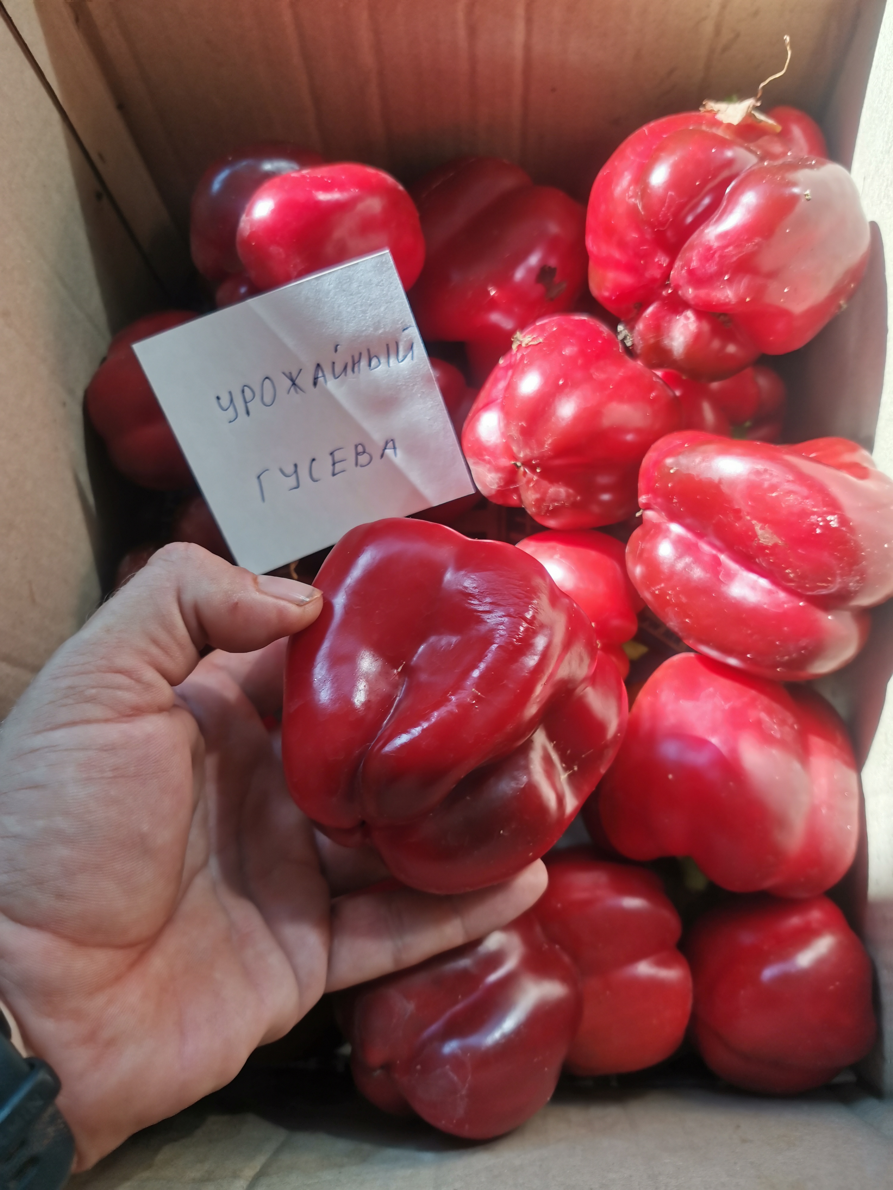 Сорт селекции питомника Семена Гусева. Высокоурожайный сорт для открытого грунта и теплиц. До трёх килограмм с растения. Ранний. Даёт три волны урожая. Плоды кубовидной формы, толстостенные.